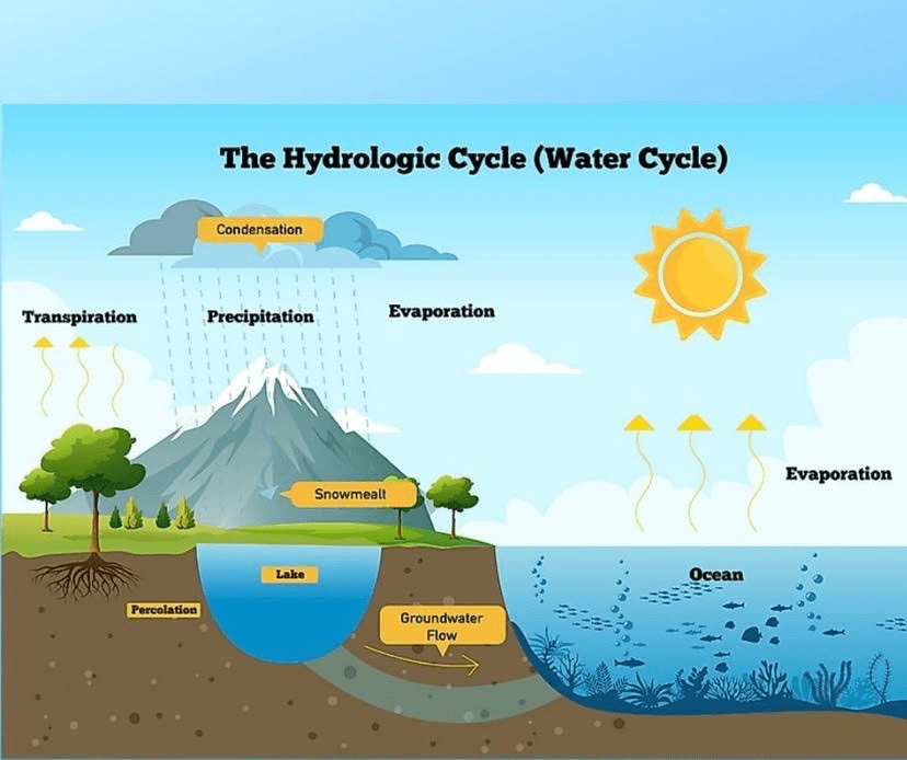 a. The concept of hydrological cycle was put forth by North Western European individuals who constantly saw drenched landscapes and perennial rainfall. This has resulted in a temperate bias in conceptualising the hydrological cycle. Unlike western Europe wherein the vapour laden winds flow throughout the year, many tropical regions like India have a different experience of the hydrological cycle.