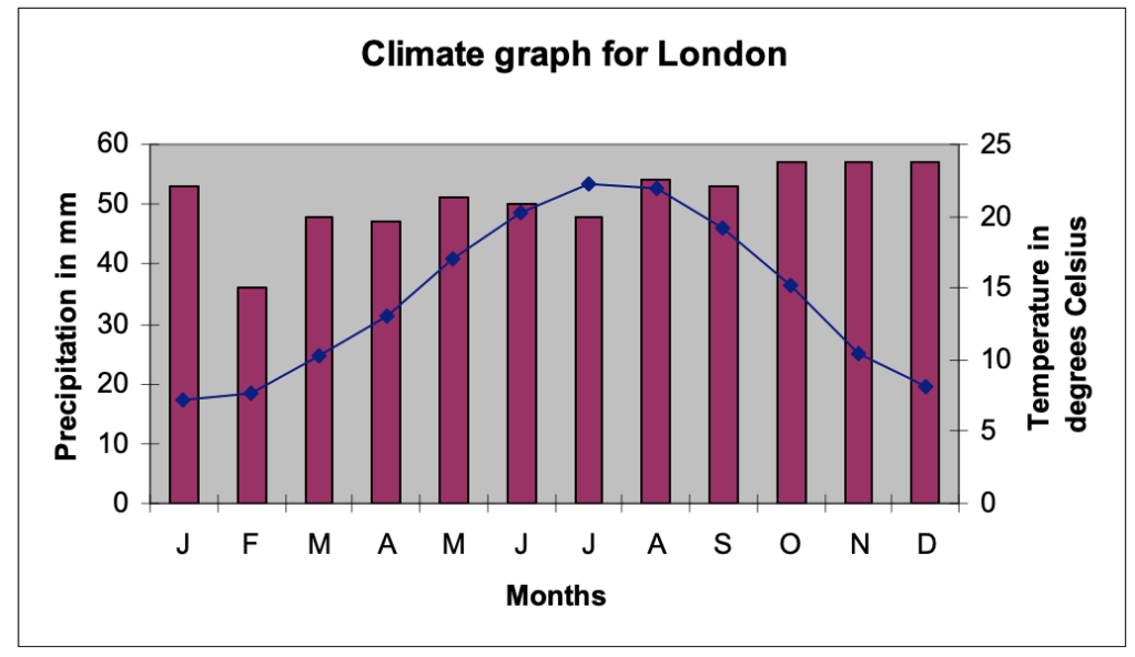 Take a look at a typical year of rainfall in London, UK (Source: RGS Teaching Resources)