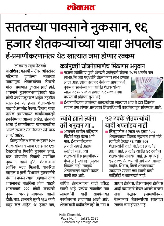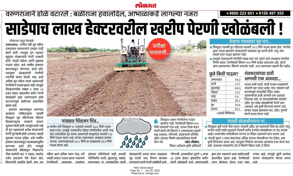 Look at these two contrasting news from last year from Osmanabad (Dharashiv) district. In June, there were news about lack of rainfall or delayed rainfall.