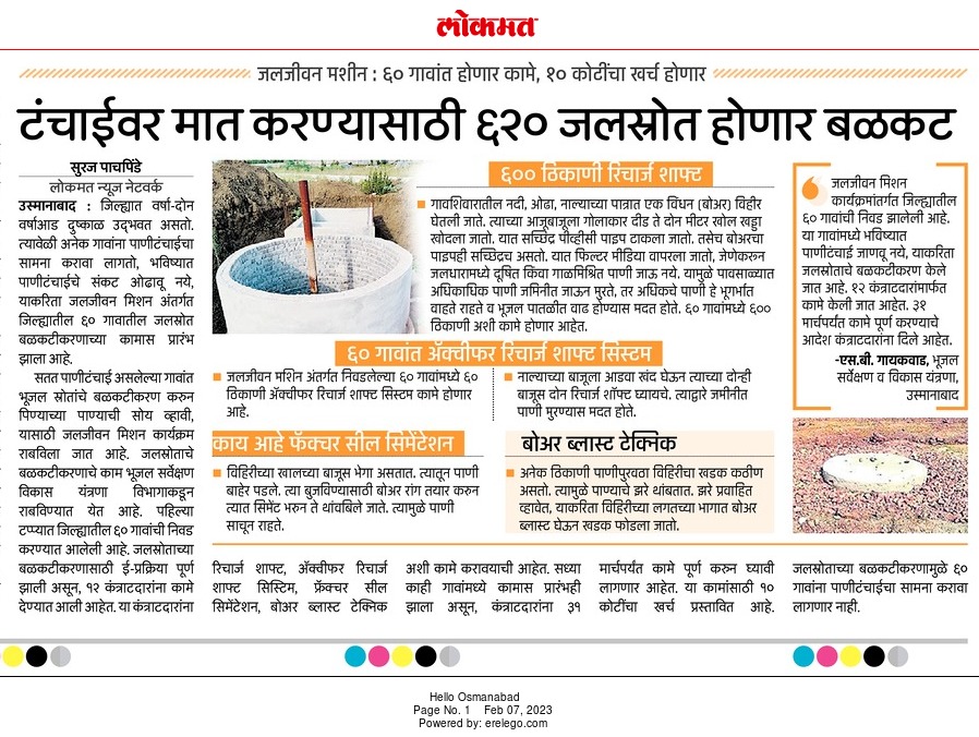 केंद्र आणि राज्य शासनाने पिण्याच्या पाण्याची उपलब्धता आणि सुरक्षितता- वर्षभर आणि नियमित म्हणून जल जीवन मिशन हाती घेतले आहे. जलजीवन चे काम जिल्ह्यामध्ये जोरदार चालू आहे. काही साखळी पाणी पुरवठा स्कीम्सचा, महाराष्ट्र जीवन प्राधिकरणाच्या योजनांचा अपवाद वगळता अनेक गावांना नवीन विहिरी आणि त्यावर आधारित पाणी पुरवठा योजनाच मंजूर करण्यात येत आहेत. त्यासाठी निधीची तरतूद केली जात आहे. हे काही नवीन किंवा वेगळे नाही. आजच्याघडीला देखील ग्रामीण पाणी पुरवठ्यासाठी जवळपास ९० टक्के गावांमध्ये भूजलाचेच स्रोत वापरले जात आहेत, जातंय. आता जलजीवन अजून नवीन विहिरी, नवीन बोरवेल किंवा हातपंप किंवा दुहेरी सोलर योजना (वाडी-वस्तींसाठी) हेच करत आहे.